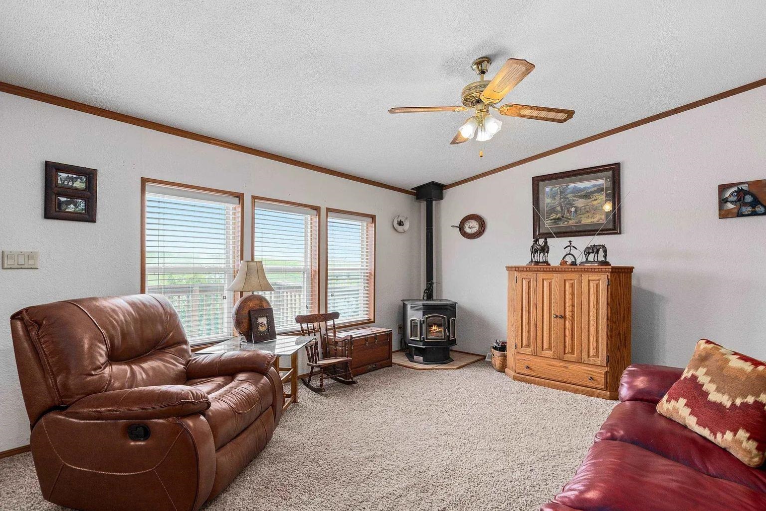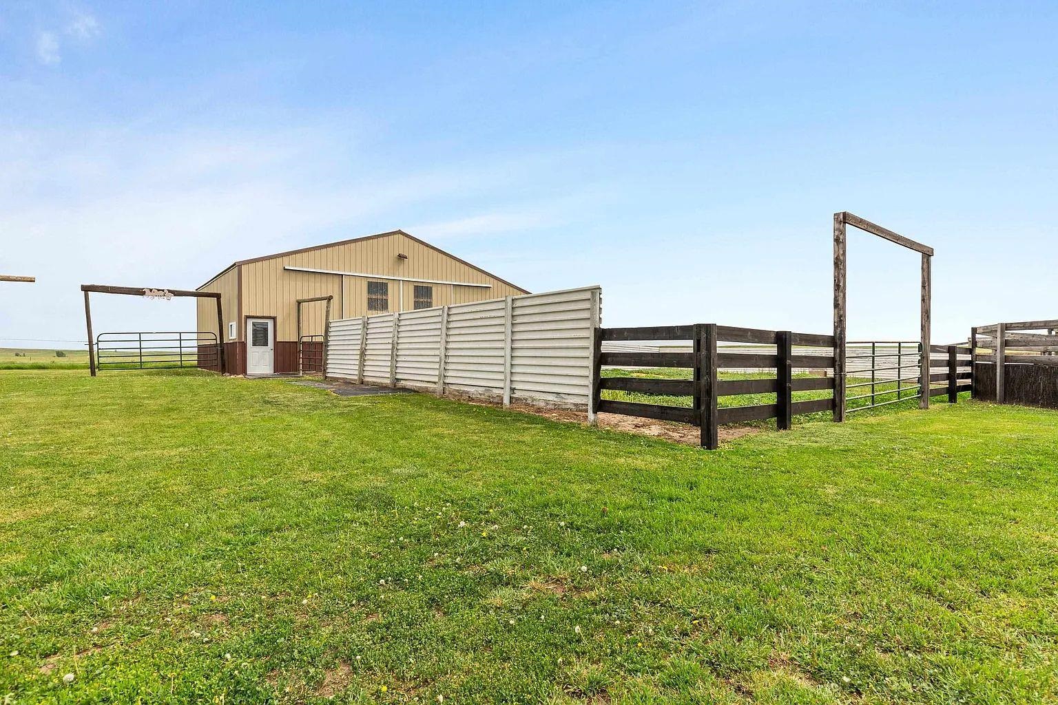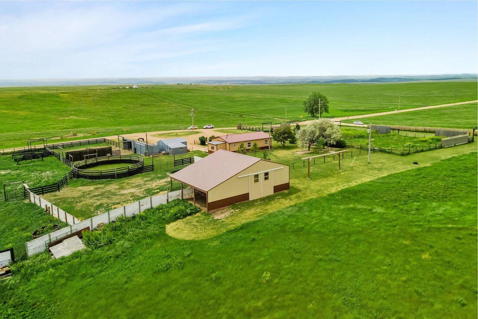 Listed By Aaron Schrader, Black Hills Listing Co. 605 220 8771 - This meticulously maintained 3-bedroom, 2-bath home sits on 25 acres of fully usable land, thoughtfully upgraded and move-in ready for horses, livestock, & outdoor living. The property is a horse enthusiast's dream, featuring an outdoor arena (250' x 100') with a return alley & roping chute, multiple pens, a 50-foot round pen, and three automatic waterers plus four hydrants strategically placed across the land. New metal high-pole entrances and gates welcome you, and all exterior wood has been treated to resist wear and chewing by animals. The home itself offers efficient & comfortable living with central air, gas forced air heat, and a cozy pellet stove in the living room. Recent exterior updates in 2023 include brand-new steel siding on the house and barn, giving peace of mind and low maintenance for years to come. A spacious 5-stall barn with insulated, lined tack room & water, plus two hay lofts capable of storing up to 500 small square bales, supports serious equestrian or ranch operations. Additional outbuildings include a garage/shop with storage room & a yard shed for equipment and gear. Located approximately 12.5 miles from I-90, this property offers easy access to regional events while still providing the peace, privacy, & wide-open skies of rural South Dakota. Whether you're raising horses, running livestock, or simply craving country living with convenient access to amenities, this property delivers.
