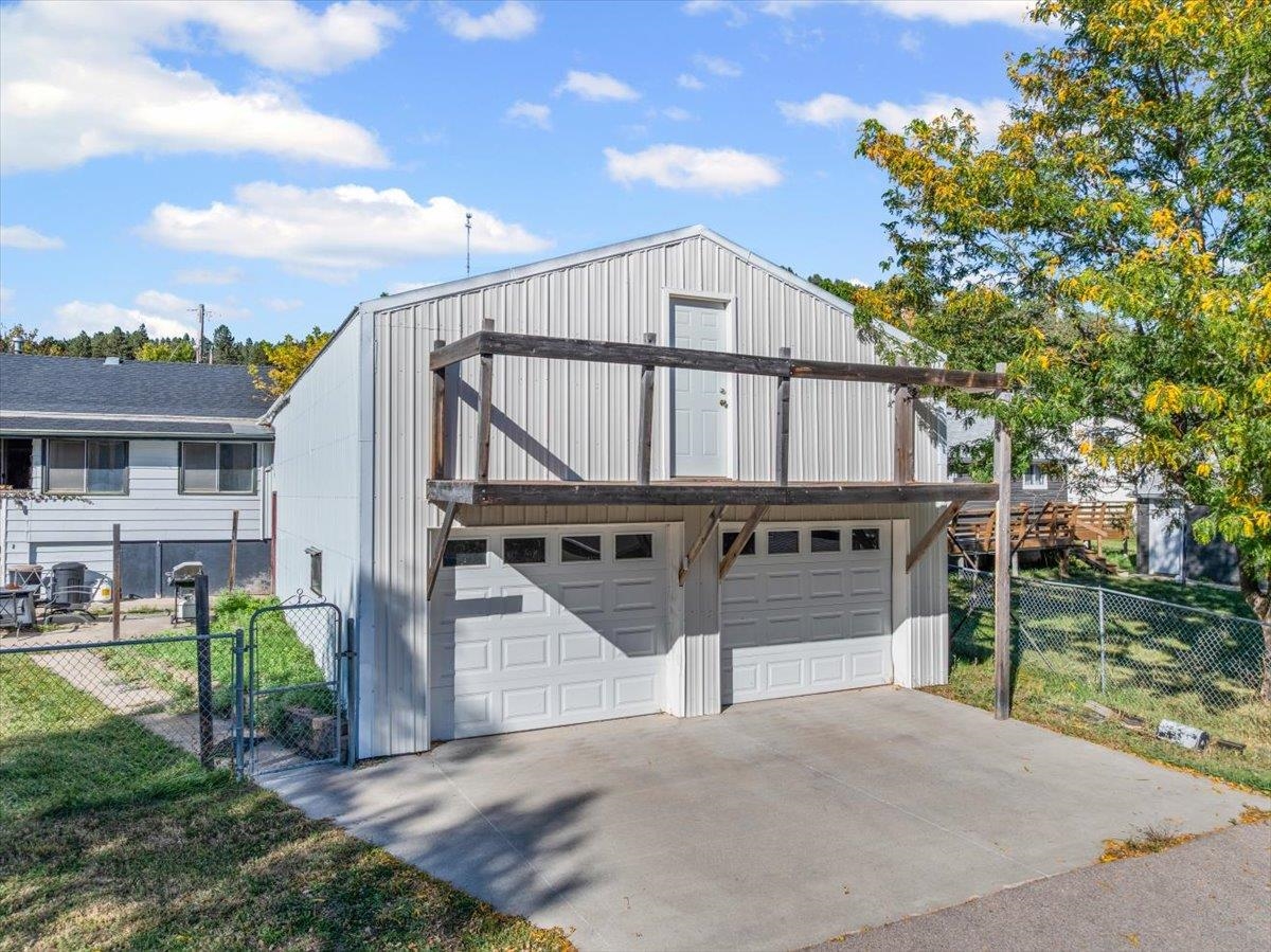 Listed by Aaron Schrader, Black Pine Real Estate 605 220 8771. If you love garage space, this home is going to be a favorite. Sitting on a spacious corner lot, it features an oversized garage big enough for up to four vehicles, complete with loft storage for all your gear. Since it's attached, you can step right inside to the mudroom, kick off your shoes, and head into the dine-in kitchen for a snack. Relax on the large front deck or gather in the main-level living room. Upstairs you'll find two bedrooms and a full bath, while the lower level offers another generous living area that's currently set up for rally renters. Two additional non-conforming bedrooms, along with a bathroom and laundry, are also located downstairs. Outside, the fenced yard gives you plenty of room to garden, play, or just enjoy the open space.